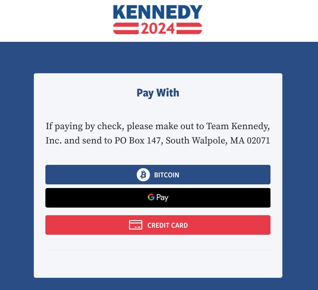 Robert Kennedy Jr has become the first U.S. presidential candidate to accept bitcoin ⚡️ donations.